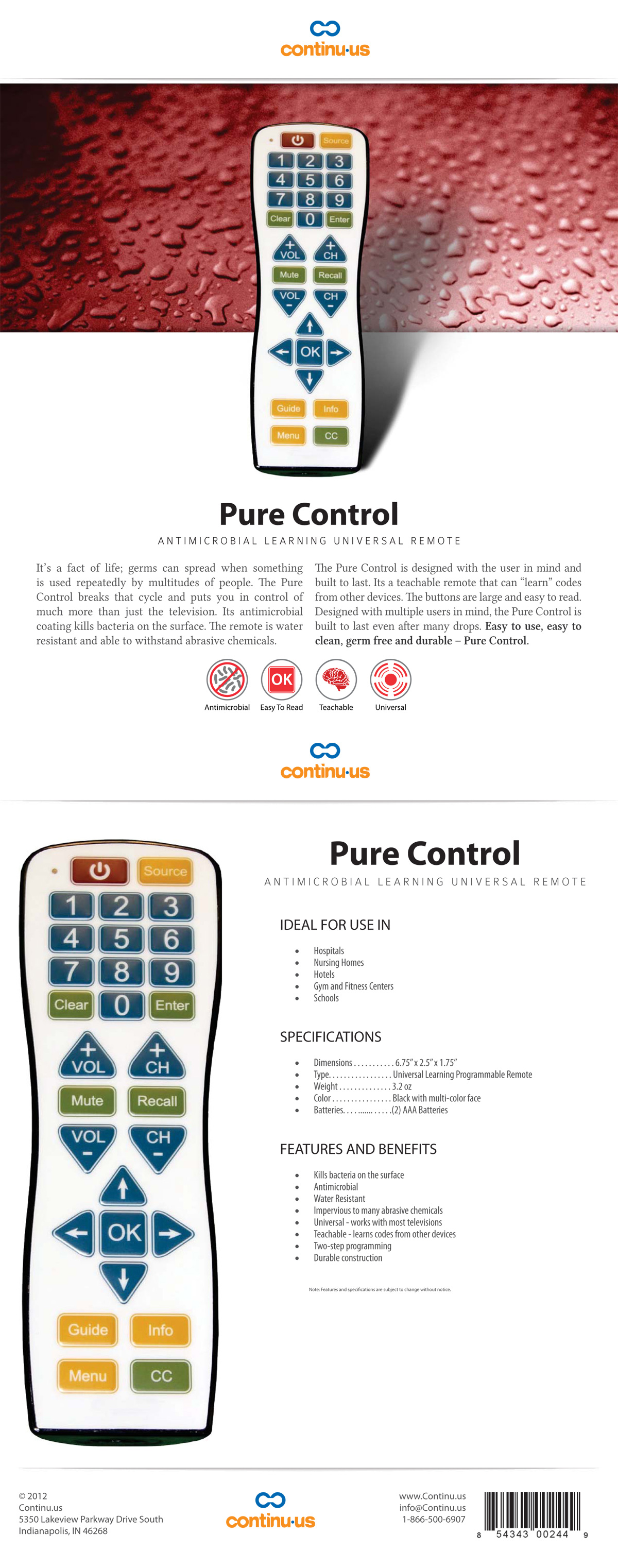 Continu.us Pure Remote Control Spec Sheet